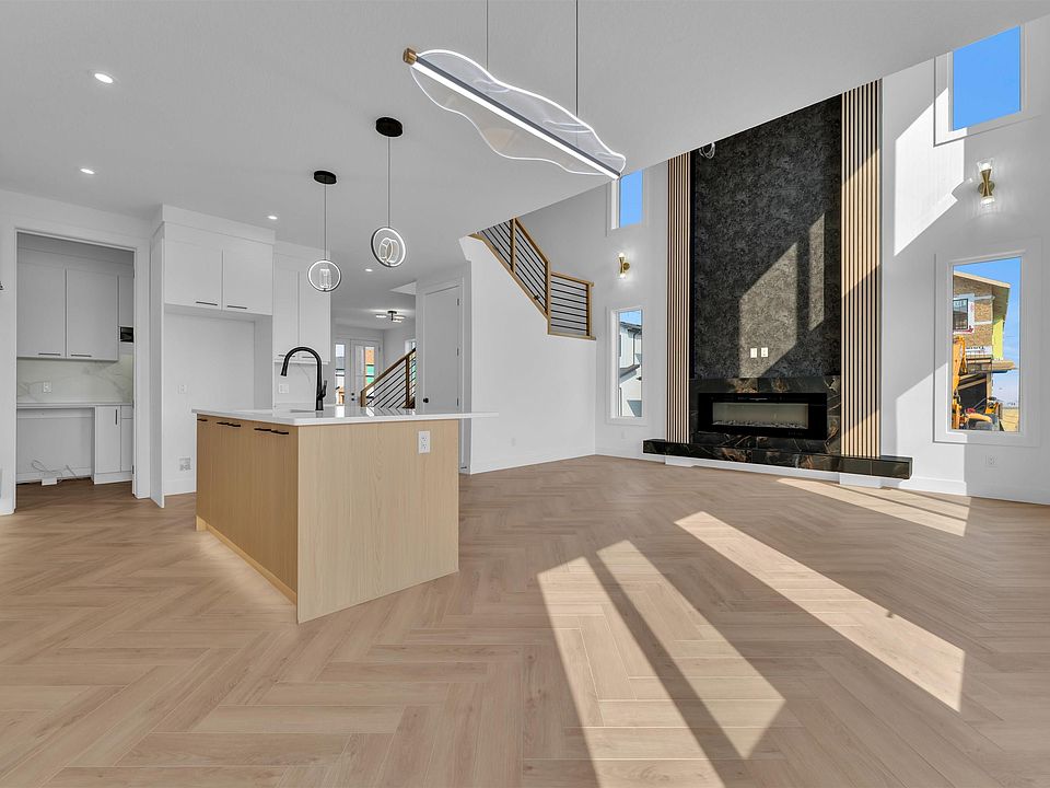 **ALCES** OPEN TO BELOW** TWO LIVING AREAS ON MAIN FLOOR** SPICE KITCHEN** BONUS ROOM UPSTAIRS** SIDE ENTRY** This stylish Edmonton home combines comfort, elegance, and practicality in a sought-after community. The welcoming foyer leads to an open main floor with a bright living area, cozy fireplace, modern kitchen with servery, and inviting dining space. A versatile bedroom and full bath on this level offer flexibility for guests or work-from-home needs. Upstairs, the primary suite feels like a private retreat with a walk-in closet and spa-like ensuite. Two additional bedrooms, a family room, laundry area, and a well-appointed bathroom provide comfort and convenience for daily living. The open-to-below design fills the home with natural light. With thoughtful details, quality finishes, and a floor plan that caters to both everyday living and special occasions, this home is perfect for families, professionals, or anyone seeking a stylish and functional space.‘Photos are representative’