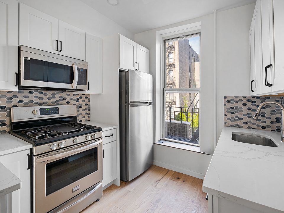 The primary bedroom is generously sized, easily accommodating a queen with room to spare for additional furniture or decor. Both bedrooms receive great light and include closet space. The home is truly move-in-ready, featuring beautifully finished oak floors, original brownstone character, a Bosch washer & dryer, and central air via ductless split systems in every room. And with Lucali quite literally across the street, you'll be living your most idyllic Carroll Gardens life.