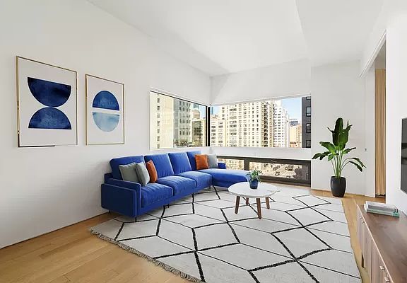 Available early Feb. Pets are not allowed. PHOTOS COMING! This corner home is quiet and has beautiful light with West and North exposures. A stylish and pristine 2 bedroom, 2 bath residence featuring innovative contemporary design. Impressive expansive triple layer tall windows, 10'2" ceiling height, select grade solid white oak hardwood floors, open-style Poliform kitchen with counter seating, Miele appliances, Dornbracht bath fixtures, Bosch washer and dryer and central AC and heat. Amenities include: full-service 24-hour doorman, cold storage, bike storage, fitness center, multi-media lounge, landscaped residents' garden/outdoor screening area.
