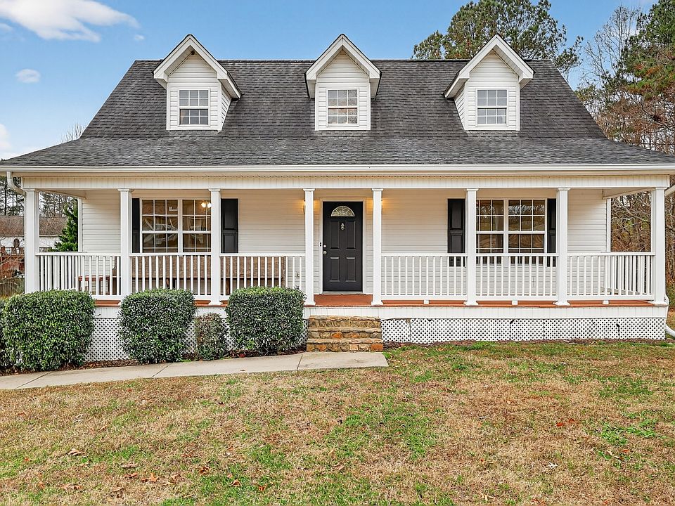 Celebrate Seasons Greetings with classic Cape Cod charm in Peachtree Estates, This 3 bedroom, 2.5 bath home sits on a full acre and welcomes you with a full-length front porch, and thoughtful updates throughout, with the freedom of NO HOA—offering comfort, privacy, and space to enjoy every moment of the year.