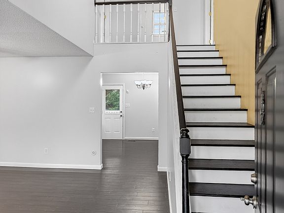 A bright two-story foyer welcomes you into a spacious living room perfect for cozy gatherings and family celebrations. The large eat-in kitchen offers white cabinetry, stainless appliances, ample counter space, and easy access to the back deck overlooking peaceful wooded views, making it your perfect everyday space for cooking, hosting, or enjoying quiet coffee mornings.