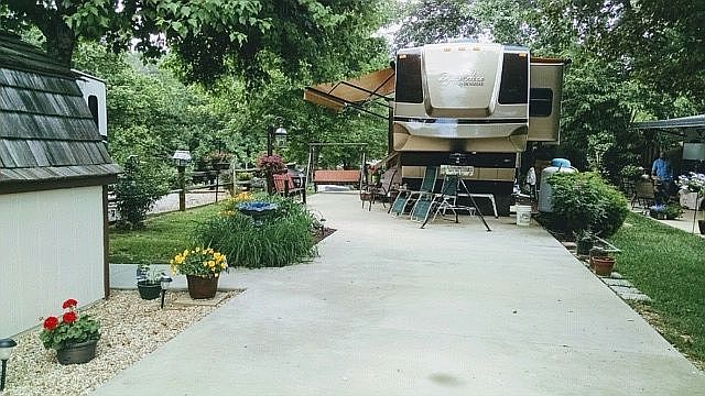 FOR SALE BY OWNER: $85,000 Special Price through September 27th after which only lot will be for sale at $40,000 : Entrance is on main road into Arrowhead Valley RV Resort. Lot has a large concrete pad with grass area & sidewalk w/Fire pit area. This overlooks a large common area Meadow w/pretty view. Fifth Wheel has 3 slide-outs, Spacious Kitchen w/microwave, refrigerator/freezer, stove, pantry, private commode closet in BR with carpet & lots of built in storage, surround sound in BR. Lot includes 8 x 10 storage shed with floor. shed fresh painted. Excellent location close to Lake Nottely Dam, Murphy N.C. & Blairsville Ga. Park offers Paved roads Covered Pavilion w/ kitchen and large fireplace, Community Pool, Coin Laundry Room and Bathhouse. The fee of $520/year covers Garbage Pickup, WIFI for TV, Grass cut, Sewer, Pavilion which you can get free for family cook outs and parties and community Pool. Well established community. This beautiful LOT 4/ #123 is close to covered Pavilion w/kitchen & fireplace, Community Pool, Bathhouse and Laundry Room Low fee to wash and dry. 5th wheel has tons of storage under the front going side to side which a lot of cottage owners are going back to 5th wheel units for that reason plenty of storage. One other thing when you look at 5th wheel units as to quality look for those that have painted finishes not add on stripes and such. This unit has factory paint designs. We keep ours waxed and it looks as good as day it came out of factory. Just put new awning and slide covers all around over slides. Located in up scale park with covenants and restrictions to keep park rating high. Our unit is our home hence we take care of it and any item that needs to be fixed we know first hand and either do it or have it done. Our roof was cleaned early this year and inspected, a couple of slide seal (rubber outside) replaced. New hot water heater last year. Camper skirted according to covenant with insulation in front and both front sides for winter use. Two AC's with heat strip in rear AC for winter use. Two 40 lbs gas bottles with a huge bottle from local gas company. Blocks under camper also with hitch support in front for a stead walk inside. Slide and jack stands are hydraulic. Two new batteries installed last year. Note- Will sell lot separate price $40,000 firm.
