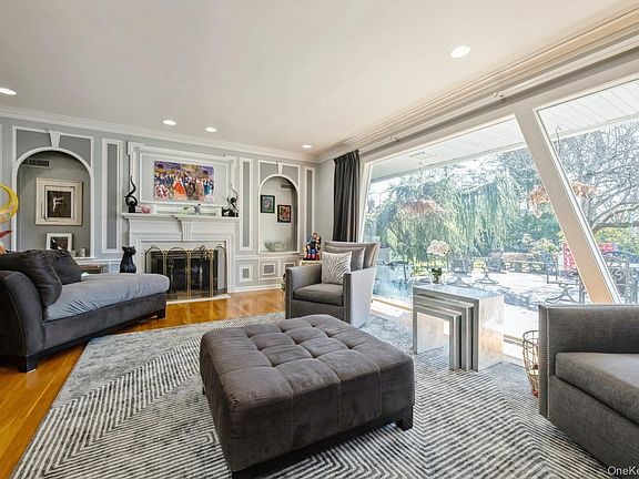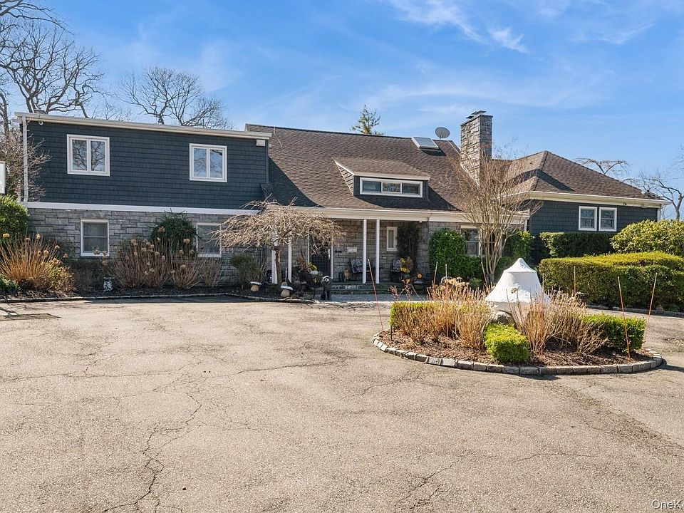 Step into this exquisite contemporary colonial estate, gracefully situated on over 1.5 acres of serene, park-like grounds. Stunning water views can be enjoyed throughout the house, creating a tranquil ambiance throughout the home. The expansive kitchen seamlessly connects to the open-concept den, serving as the heart of the home—perfect for family gatherings. For more formal entertaining, the property offers an elegant dining room and a spacious living room. The home features many floor to ceiling windows allowing for bright natural light and spectacular water views. The full finished basement includes a cozy den, a bedroom, and a half bath, providing extra living space. A convenient first-floor bedroom with an en-suite full bath is ideal for guests or multigenerational living. The private primary suite, located on its own level, features a luxurious full bath for ultimate privacy, with many closets for storage. Additionally, there are four generously sized bedrooms and two full baths, ensuring ample space for family and guests. This estate offers both beauty and functionality, all while benefiting from low taxes! All offers being reviewed!