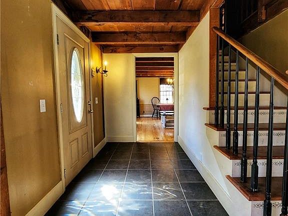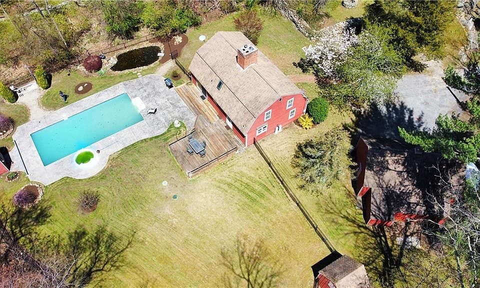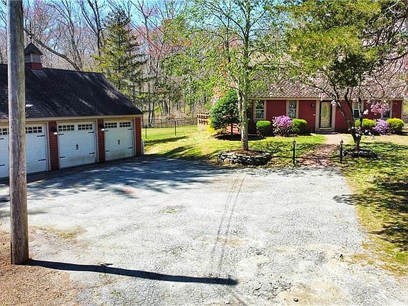 Beautiful 17th Century reproduction gambrel colonial home in the countryside of North Scituate , is complete with post and beams, offers three bedrooms , including a master bedroom with fireplace , two full bathrooms , three total fireplaces , wide board pine floors throughout , large living room with brick fire place, renovated large kitchen fully appliance and dining room with a brick fireplace, large deck ,also offers three oversize detached garages , sitting in one acre of land, the grounds are surrounded by stone walls and gardens, the fenced in yard is a staycation with 18x40 inground pool with spa, brand new custom pool cover. With all the privacy you can ask for. l. The home seats nicely off road but provides excellent access to the elementary, middle and High school and Providence.