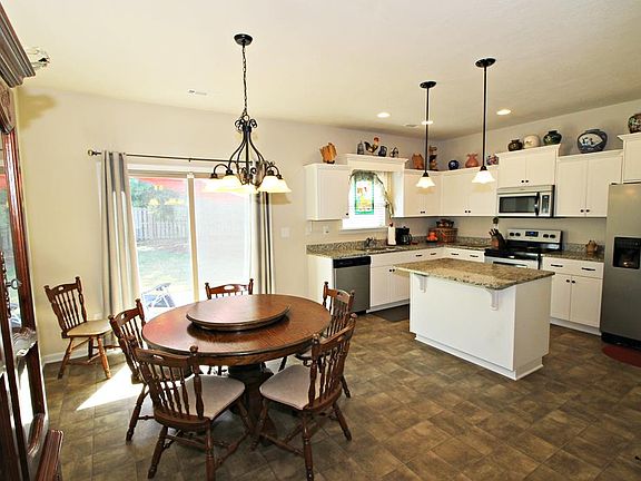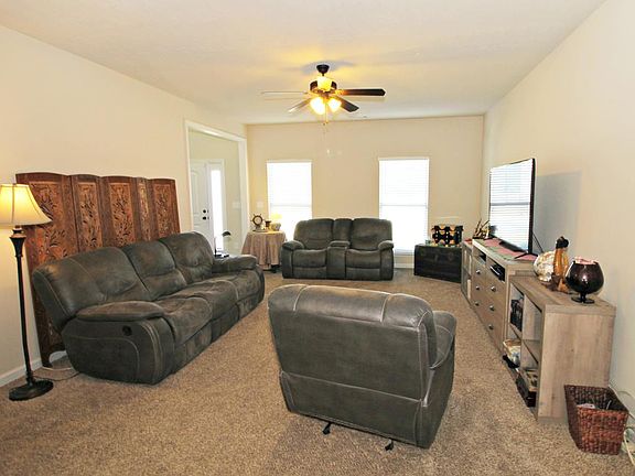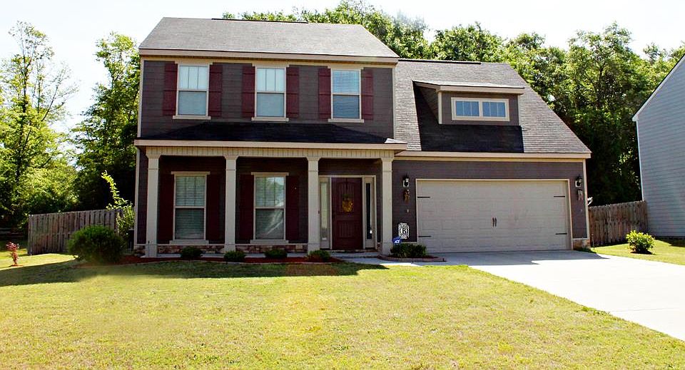 Spectacular 4 bedroom, 2.5 bath home 9 miles to Ft Gordon with desirable floor plan, rocking chair front porch & many upgrades! Gorgeous wood floors in foyer opens to large living room with ceiling fan! Amazing kitchen with granite countertops, island with pendant lighting, stainless steel appliances, breakfast bar, pantry & fridge stays! 1st floor owner's suite w/ ceiling fan, double sink vanity, framed mirror, garden tub with tile, step-in shower & walk-in closet! Cute half bath with pedestal sink & framed mirror! Nice landing area upstairs for extra sitting space! Spare bedrooms with ceiling fans & walk-in closets! Large 4th bedroom would make great rec room! Guest bath with oil-rubbed bronze fixtures! Grilling area, 2-car garage with epoxy floor, irrigation front & back, 2" blinds throughout and storage building stays! Large laundry upstairs with shelving.