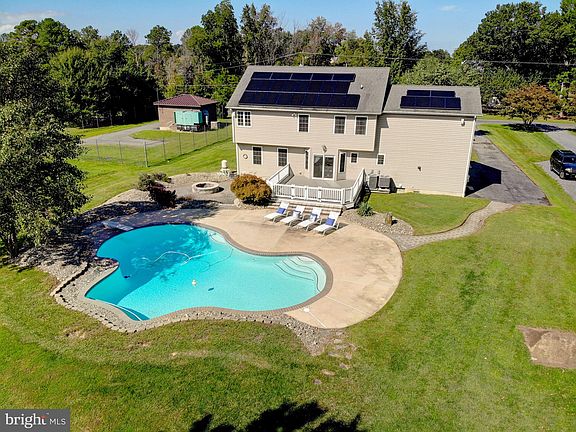 ATTENTION BUYERS: VA ASSUMABLE RATE of 2.49% AVAILABLE!! Discover the charm of this stunning Colonial home nestled in the desirable Bentons Pleasure neighborhood. With 2,791 sq. ft. of thoughtfully designed living space, this residence boasts four spacious bedrooms and 2.5 baths, perfect for both relaxation and entertaining. The well equipped kitchen invites culinary creativity, while the semi open floor plan seamlessly connects the dining and living areas, highlighted by a cozy fireplace. Enjoy the luxury of a soaking tub in the master bath and the convenience of walk-in closets. The home features beautiful wood floors and ceiling fans throughout, ensuring comfort year-round. Step outside to your private oasis, complete with a personal pool, ideal for summer gatherings or tranquil evenings. Located just minutes from commuter lots and an airport, this home offers easy access to local amenities, parks, and shopping. With a generous 1-acre lot and a side-entry garage, this property combines space, style, and convenience. Solar panels, too! Don't miss your chance to make this dream home yours!