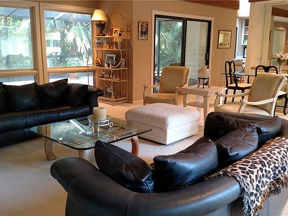 Located at the end of a quiet cul de sac with a large natural preservation area in the backyard for added privacy. You will find open spaces in this contemporary home with lots of glass and natural light for your family and entertaining possibilities. There are three bedrooms and two and a half baths with den off the open, airy kitchen with skylights over the eat-in kitchen nook. Featuring an extra large screened in patio off the living room and extended open patio off kitchen that affords plenty of outside enjoyment. Keep your binoculars handy to watch birds and wildlife! Kitchen has been remodeled and master bath walk-in shower upgrade. Brand new 2019 HVAC installed. First right of refusal by Omni AI, LLC. .005% of contract price paid by buyer to Amelia Island Plantation Community Asso Reserves Fund.
