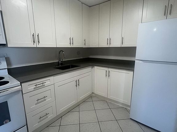 Renovated kitchenShaker-style cabinetsQuartz countertopsStainless steel appliancesHardwood floorsPrivate balconyOn-site laundry