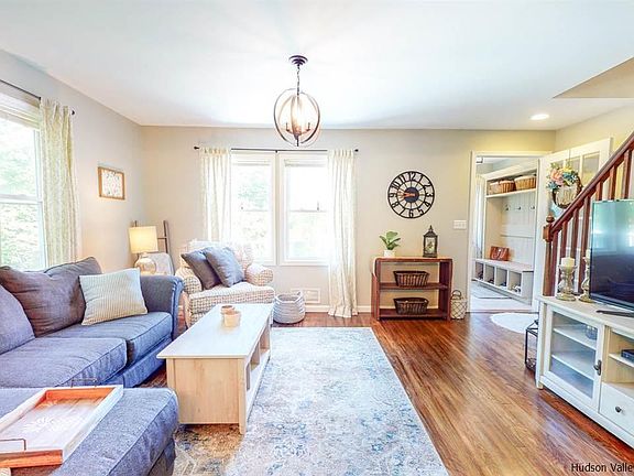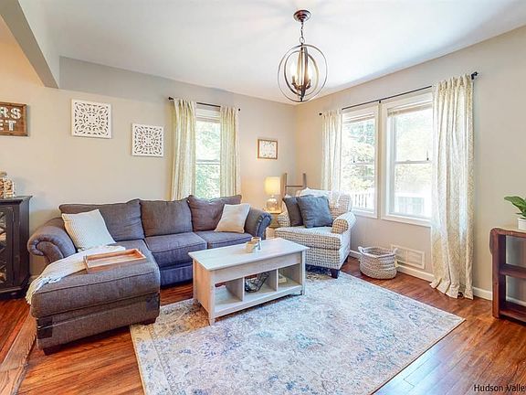 Turn-key Cape style home conveniently located to the village of Catskill, Hudson, Hunter Mountain, Woodstock and many more quint country towns. This easy to maintain 4 Bedroom home was tastefully renovated. Hardwood floors throughout, large eat in country kitchen with new appliances, countertops, farmhouse sink and ceramic back splash and floor. Access the spacious back yard from the kitchen. Enjoy the lush landscaping that gives a privacy border around the home. Sweet patio area perfect for outdoor dining. First floor offers 2 bedrooms and full bath. One of the first floor bedrooms is currently being used as an office. Both rooms have multiple windows allowing the natural light in all day long. Classic wood railing on the staircase to the second level brings you to the other 2 bedrooms, also with hardwood floors. Black top drive leads to the 1 car drive under garage and basement. Dry basement with ample room for storage. NEW furnace installed this year. There's nothing to do but move in and enjoy!