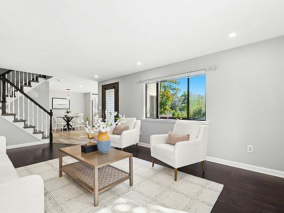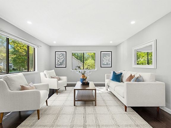 Welcome home! This beautiful three-level townhome features an open floor plan that leads you into a bright kitchen equipped with a granite center island, stainless steel appliances, and access to your private deck. The first level also includes a sunlit eat-in kitchen area, a spacious living room, and a half bath. Hardwood floors flow throughout the living room, hallway, and both bedrooms. On the second floor, you'll find two oversized bedrooms and a full bathroom. The lower level hosts a finished bonus room with durable vinyl plank flooring, a separate laundry area, and direct access to the garage. An added perk is the private side yard! Positioned directly across from Hudson High School and close to numerous shopping and restaurant options, this townhome is in an ideal commuter location, with easy access to Routes 290 and 495. A quick closing is possible, come see this special space today!