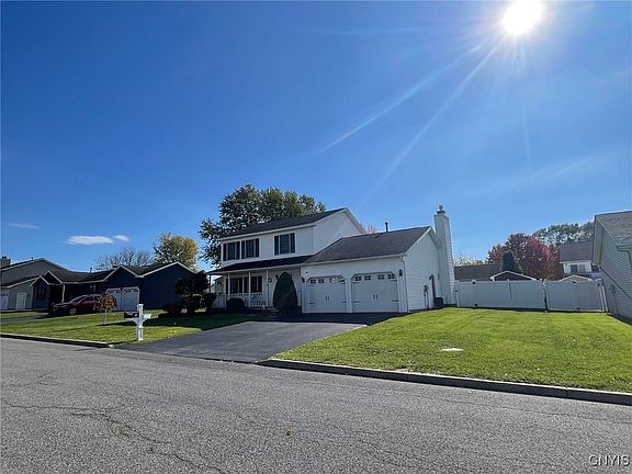 Welcome to this charming two story Colonial offering 1,696 square feet of comfortable living space, perfectly situated on a .24 acre city lot. Built in 1992, this well maintained home blends timeless design with modern convenience. Step inside to find beautiful hardwood floors throughout the main living areas, including a spacious living room, formal dining room and a cozy family room complete with a gas fireplace - ideal for gatherings or quiet evenings at home. The custom kitchen with solid surface counters is centrally located, offering functionality and easy flow between rooms. Upstairs, you'll find four generously sized bedrooms and 2 baths, providing ample space for family, guests or a home office setup. The primary suite includes an en-suite bathroom for added privacy and comfort. Step outside to your own backyard retreat featuring an inground pool - perfect for entertaining or relaxing during warm Summer days. Located in a convenient city neighborhood close to schools, shopping and parks, this home is ready for you to move in and make it your own. Municipal electric! Central air! Rear deck! Covered front porch! I could go on and on . . .