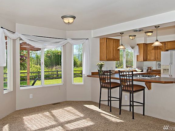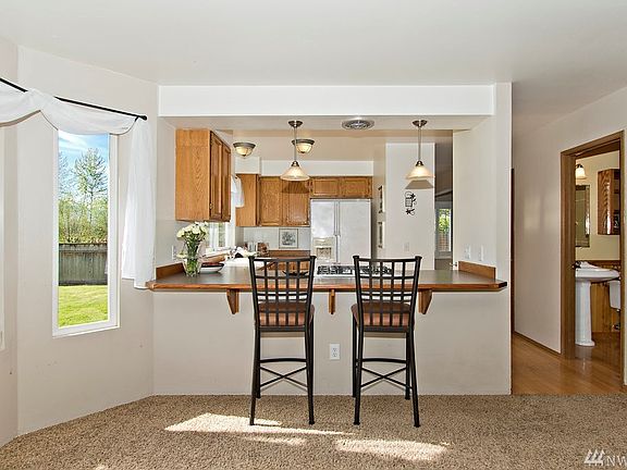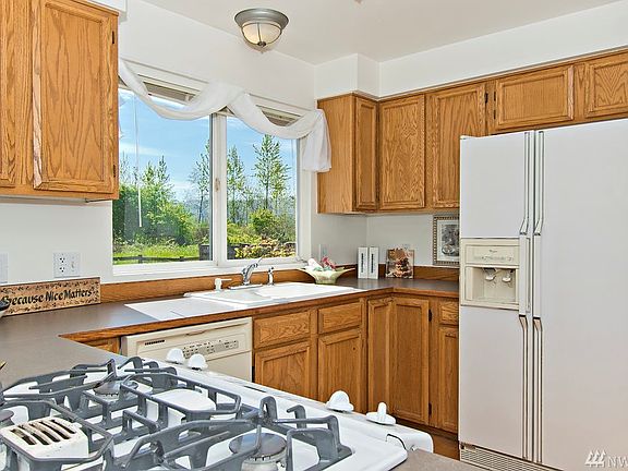 Amazing views at this wonderful Cul-de-Sac home walking distance to a City Park in Enumclaw. Back patio is plumbed for a hot tub, mini heat pump on the first floor for the warm summer days. Front screen door with a moving window panel. This home has a lot of fun surprises to it. Wonderful potting shed in the back yard, raised garden bed and lots of privacy. 1 Year AHS Home Warranty Included.