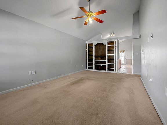 This ranch has three bedrooms and two full baths. Large living area with custom built in cabinets. Eat in kitchen has an abundance of cabinets, stainless steel appliances, smooth top range, dishwasher, microwave and French door refrigerator. Nice size island for food preparation. Covered deck off the breakfast area leads to a fenced in backyard. Front loaders stay in laundry room.