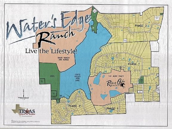 Waters Edge Ranch off-water building location. Adjacent Lot #122 also available for sale. Custom home gated community. Amenities include a fully stocked private lake complete with boat launch, private boat slips, horse facilities, community swimming pool, cabana, RV hookups and more.