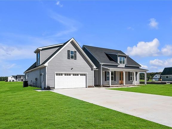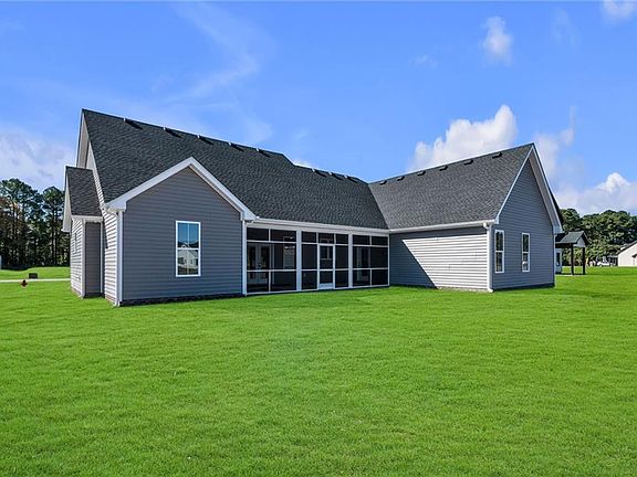 Welcome to the Applewood model at Keeter Barn Landing! This gorgeous ranch home offers luxurious finishes, including a designer kitchen with soft-close cabinets, center island, wall oven, microwave, electric cooktop with hood, and under-mount sink. Enjoy the open floor plan with a bright family room featuring an electric fireplace. The FROG is its own private suite, and a dual-entry bath connects the guest bedrooms. The primary suite boasts a tiled shower, dual vanities, soaking tub, and walk-in closet. Relax on the covered rear porch overlooking the half-acre lot. Conveniently located minutes from Chesapeake, VA, military bases, shops, and restaurants, with easy access off Hwy 17. Choose from seven floor plans starting in the low $400s. Photos show a similar model and may include upgrades. Can be complete in 30 days. Model open Wed–Sun, 12–5 PM. Call today!