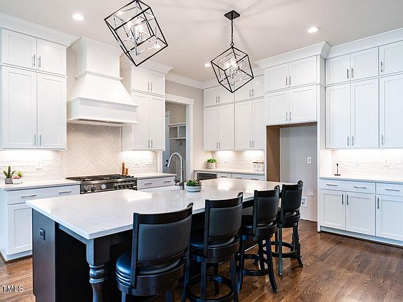 Custom built by Walker Design Build. Step into a home where every detail has been thoughtfully designed, offering features that truly stand out! The gourmet kitchen boasts ceiling-height cabinetry, stunning quartz counters, under-cabinet lighting, a high-end Bertazzoni gas range, and a large walk-in pantry, making it both beautiful and functional. The first-floor owners' suite impresses with a tray ceiling, a custom walk-in closet, and a spa-like bathroom featuring double vanities with quartz counters, slow-close cabinetry, and a frameless, zero-entry shower with both a regular shower head and a handheld wand. A guest bedroom with an ensuite bath is conveniently located on the main floor, providing extra privacy for visitors. Throughout the first floor, enjoy the warmth of oak site-finished hardwoods and a modern gas fireplace in the family room, which also features a built-in sound system for enhanced entertainment. Large sliders from the family room open to a screened porch and Trex decking, perfect for seamless indoor-outdoor living. The home backs to a peaceful greenway, offering scenic views and added privacy. Upstairs, you'll find two additional bedrooms and a spacious bonus room with built-in cabinetry and quartz counters, ideal for a media room, home office, or play area. Plus, the home offers two large walk-in storage spaces, providing more storage than most new builds. Other highlights include a pocket office, a laundry room with sink, quartz counters, and cabinetry, custom blinds, a security system, an RO water filter, and a conditioned crawlspace. Located within walking distance of Knight Farm Park, featuring a dog park, play equipment, paved walking trails, and a pavilion—perfect for outdoor activities.