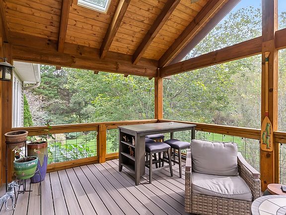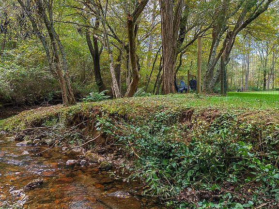 Surrounded by native plants and open, park-like grounds, this lovely home sits beside a clear, winding creek that brings a soothing rhythm to everyday life. Enjoy the peaceful setting from the timber-framed screened porch or deck, where nature's quiet feels almost like heaven on earth. This charming two-story home offers three bedrooms and two full baths on the main level, plus a fully finished basement with an additional bath—ideal for guests or extra living space. The main-level primary suite includes a private enclosed porch for year-round relaxation. The open main area provides plenty of space for entertaining or family gatherings. Downstairs, an open porch with a hot tub overlooks the fenced backyard, while a covered area adds convenient outdoor storage. Located just minutes from town in a quiet neighborhood with no HOA, this home perfectly blends comfort, nature, and mountain charm—a hidden gem best experienced in person. Even better, this home and property are not in a flood plain.