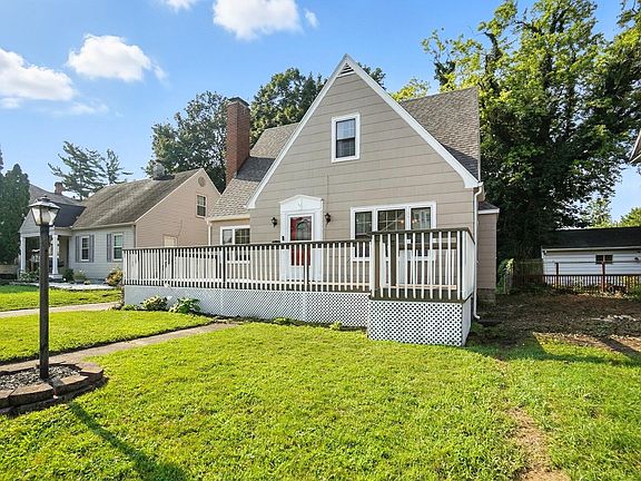 Charming and warm, this surprisingly large (over 2000 sq ft) home has so much to offer! Out front, beautiful curb appeal is evident by the perennial plantings, fresh paint and large deck which once had an ADA ramp. Inside, the home has large scale rooms with gleaming hardwood floors and original doors & hardware. The primary bedroom is also on the first floor with two closets and ensuite bath. Upstairs, a landing with huge original built-in, 2 more bedrooms + bonus room, and a full bath. Located in the historic Ridgewood subdivision, all the amentities of downtown and Bechtle shopping are minutes away. There is a back patio with super private backyard that will make you forget how close to everything you are! Updates include roof, gutters and downspouts, fresh paint inside and on exterior, all 2025.
