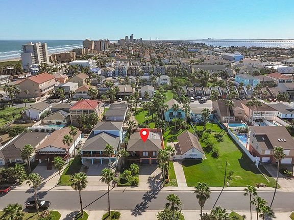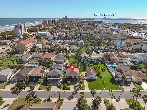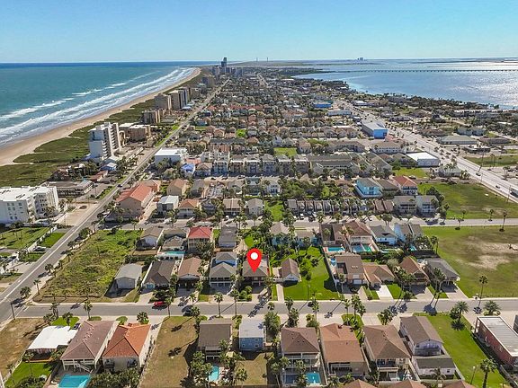 Embrace the ultimate beach lifestyle! Step into your coastal sanctuary, just a short walk to the beachfront. This exquisite 3 bedroom, 2.5 bathroom home offers ample space for both entertaining and everyday living. The kitchen offers an abundance of counter space and storage for prepping and socializing. The backyard features a large, heated pool, surrounded by lush native plants and a hot tub. The outdoor oven makes it easy to savor the South Texas evenings, all while listening to the soothing sounds of nearby waves. Home offers energy efficiency with solar panels, programmable thermostat and double pane windows. Excellent rental opportunity, as home will accommodate 18 guests with a living room on each level. A rare opportunity! Call to set up your showing today!