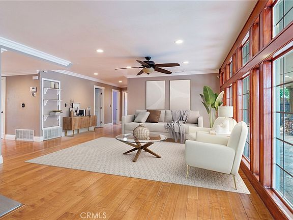 Welcome to this spacious 4 bedroom 2 bath home in a highly desirable neighborhood in Riverside. The home offers an open floorplan with a soothing color palette with plenty of natural light, recessed lighting, beautiful florring and ceiling fans. Shutters throughout. Perfect for entertaining. The kitchen features granite countertops. The living room has a warm and welcoming fireplace and gorgeous windows that give a relaxing view of the backyard. The main bedroom and private bathroom are separated from the rest of the home, that allows for more privacy. End your day in the soak tub in your bathroom.The backyard is an oasis with a sparkling pool, a covered patio, and barbecue with a fire feature. The covered patio area is an outdoor living area for you to enjoy. This home is conveniently located near schools, shopping, and freeways. This home has 17 Solar panels, to assist with energy efficiency. Don’t miss this opportunity to own your dream home!
