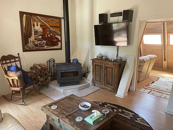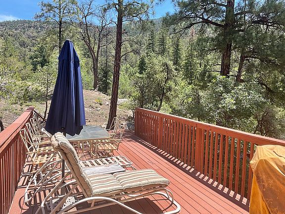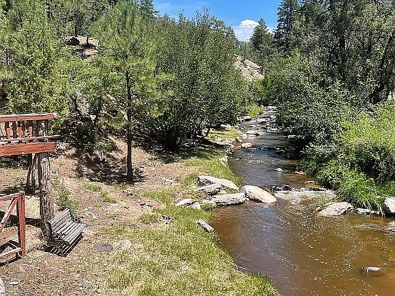 Your own private heaven, right on the Jemez River with 3000 sqft decks for views to die for. Really happy house in a very rare location just minutes away from the village of Jemez Springs but surrounded by forest and Privacy. The sound of the rushing river past your window abounds in this multi-level permanent or vacation home. There is a Furnace and 3 wood burning fireplaces. If it is warm enough, the Evaporative cooler can be used. The Master suite has a Jack and Jill bath with the second bedroom up stairs. There is a bedroom down stairs with arrangements to Sleep 8 comfortably. Fully insulated and furnished, fully equipped kitchen. 2 living areas with an A-Frame main structure. Very unique, 1-1/4 hours Northwest of Albuquerque, 3 miles north of the village of Jemez Springs. Right on the Jemez River near Soda Dam and Battleship Rock.