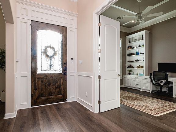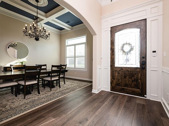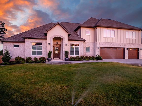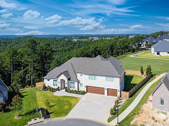 This exquisite home built in 2023 is settled on a level lot at the end of a cul-de-sac overlooking greenspace & a valley view. 5 beds/4.5 bath smart home features 10’ ceilings, plantation shutters & automated window coverings. Main level has office, dining, 3 bedrms, includes primary, 2 full baths & powder rm. All soft-close cabinets/drawers. Living rm w/ wood cathedral ceiling, gas FP & wired for surround sound w/ in-ceiling speakers. Pull-down TV mount over FP. Kitchen boasts ample counters w/ bar seating & island. Induction cooktop w/ professional-grade vent, Café Line double ovens, farmhouse sink (+ prep sink), ss fridge, drawer microwave & pantry. Primary suite features double tray ceilings, sitting area, bath w/ vanity seating, heated tile floors, claw tub, shower w/ dual heads & lrg walk-in closet w/ 2 built-in chests of drawers. Guest rooms connected by J&J bath w/ heated floors. Laundry has full-size fridge, cabinets/storage. Upstairs is living area & sunrm, lrg storage rm, 2 bedrms/2 baths. Covered patio has outdoor kitch w/ gas grill/side burners. Generator, ext cameras, spklr systm & programmable holiday lighting. 3-bay OVRSZD garage & EV charger. See attached features.