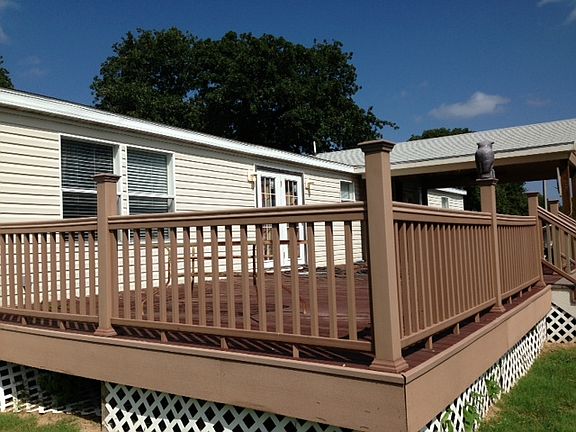 4 or 5 Bedroom mobile home fully furnished, over 5 acres very private location 5 minutes away to lake to boat launch at Burns Run East or West. Actually a 5 bedroom it can sleep 23 people if necessary. Master bathe is huge with garden tub sit down vanity ,walk in shower and closet. 2 dining and living areas ,large covered and open deck. Security system and lighting. Office/mud room nook off kitchen. 5th bedroom has huge walk in storage closet. 50 X 40 shop with 6 over head doors for easy pull through. Shop has electricity and dirt floor surface. This is the perfect family lake house approximately 3 hours from OKC and I hour to Dallas. Major shopping in Sherman Texas 20 minutes away. Owner Agent .
