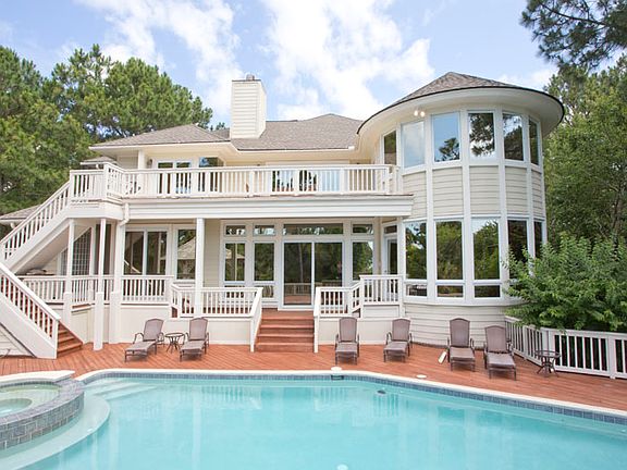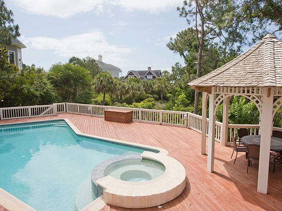 Located just steps away from Kiawah's 10-mile beach, 123 Flyway Drive was custom designed to showcase ocean views. Convenient to The Beach Club and The Ocean Course, this ideal location is perfect for enjoying all that Kiawah Island has to offer. Outdoor living spaces--including pool, spa, gazebo, and private boardwalk to the beach--offer multiple vantage points for soaking up the sights and sounds of the ocean. With the appearance of a grand Southern estate yet the comfort of a traditional beach house, 123 Flyway gives residents a sense of truly having arrived to their personal island retreat upon entering up the driveway. Recently renovated, this home's luxurious, fully furnished interior begins with the elegant front entryway accented by an arched window over custom double doors. Standing in the soaring foyer, residents and guests are greeted with the shining hardwood floors, tall ceilings, and thick crown molding that grace the bright interior spaces. Featuring floor-to-ceiling windows that frame magnificent views and sliding glass doors that lead to the outdoor living spaces, the spacious living room brings the beauty of the outdoors inside. This space also includes exposed beams, a wet bar, and granite-surround fireplace flanked by built-ins. Conveniently just adjacent to the living room is the state-of-the-art kitchen, which features recent renovations--including stainless steel, GE Profile appliances, a granite island with cooktop offering seating for four, an abundance of cabinet space, tasteful updated lighting fixtures, and a desk area for storing recipes. Sure to be the heart of the home, this kitchen is well equipped for cooking for a crowd. Two master suites, one on each floor, feature walk-in closets, deck access, and baths with dual vanities. Four additional guest rooms, each a relaxing retreat in and of itself, ensure that visitors will feel at home. Two of the four bedrooms open onto the outdoor living spaces. All of the baths showcase beautiful custom renovations. Other highlights of this home's interior include a home gym, new laundry room, and second-floor media room with access to a balcony offering breathtaking ocean views.