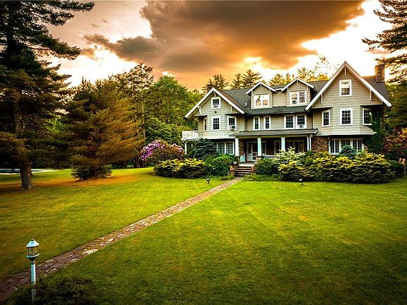 Welcome to Green Gables! Historic home w/ 11 luxurious BR's, 5.5 baths situated on 26 beautiful acres! In-ground heated pool, tennis court, game room, tranquil pond w/ waterfall nestled in the heart of the Poconos. Less than 90 min. from NYC, 1 hour from ABE & Scranton Airports. Main floor features 2 living rooms, w/ stone fireplaces & wood beamed 10 ft. ceilings. Sit on the oversized front porch 13 x 24 and enjoy the peace and serenity. Side screened in porch w/ a sweeping view of the pool, cabana, tennis court & grounds. Large elegant patio connects the Main house to the Cottage which consists of 3 additional BR's, 2 Baths, plus 7 car garage that houses a gym and game room. Pond & waterfall complete this idyllic setting for this breathtaking property. See Photo & Video tour.