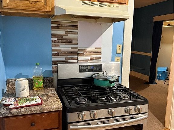 Detached garageQuaint enclosed front porchAdjoining dining areaGas range