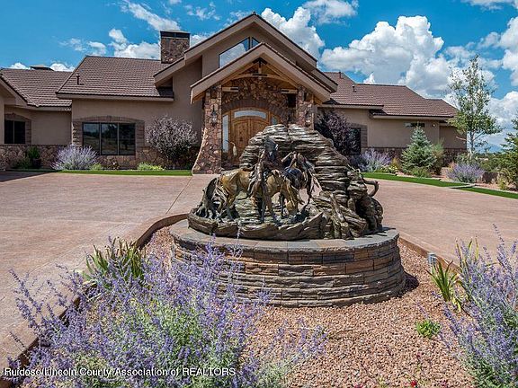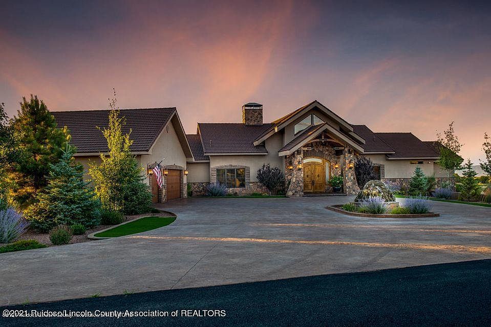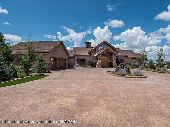 IMPECCABLE, LUXORIOUS CUSTOM, AT THE OUTLAW!! This is mountain living at its best! Upscaled architectural features throughout with this spacious mountain lodge style 4BR, 4½BA home overlooking the 6th fairway. Entry has stamped concrete drive with Vic Payne water feature and is set in front of 1,482 Sq. Ft. garage. Stunning handmade trusses highlight the great room and bar with purple heart cedar bar top that is found locally, 8' hardwood flooring and massive floor to ceiling fireplace. Chef's kitchen equipped with granite countertops and a 5x8 walk-in pantry. Fabulous master suit/bath. 4 fireplaces total. Views of Sierra Blanca/Capitan's from the spacious concrete decks with Fire Magic grill, infra tech heaters, remote fireplace and 60'' tv. Outdoor living at its finest.