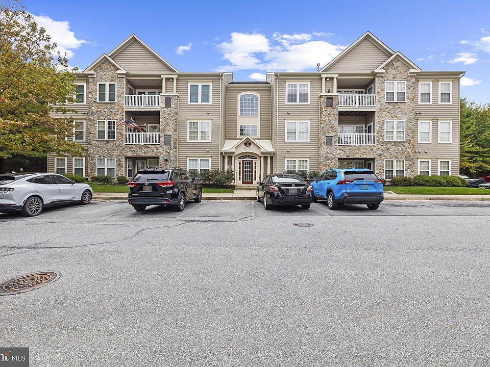 Main level 2 bedroom and den, 2 full bath condo located in the gated community of Glyndon Trace has over 1,300 square feet of living space and offers new carpet in the primary bedroom and gas heat 2023. Features include crown molding, chair rail, ceiling fans with lights, walk-in storage closet in foyer, primary bed and bath, 2nd bedroom with attached dual entry full bath, tile backsplash in kitchen, living/dining combo, large kitchen with gas stove, pantry, kitchen counter bar with pass thru window to living room, designer column with pass through window in den, walk-in closet in primary bedroom, tub shower with grab bars in both baths, ceramic tile floor, linen closets in both baths, recessed lights, washer and dryer in unit, all appliances included, patio with utility closet, secure building with intercom and elevator, gated community with security cameras at entrance, inground saltwater pool with hot tub, clubhouse, exercise room and more! Not FHA approved but the community is VA approved. Property tax record has the address as Owings Mills which is incorrect