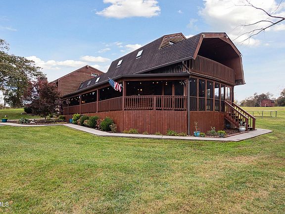 BACK on MARKET due to no fault of the seller. This beautiful custom log cabin home, located off the road on over 1.53 acres in Gray, TN, offers a serene and spacious retreat with modern comforts and plenty of room to entertain. The large, covered wraparound front porch sets the tone as you enter into a two-story living room that seamlessly connects to the kitchen—perfect for hosting friends and family. Just off the living room, a cozy family room with a large fireplace provides a relaxing space, along with a private office for work or study.