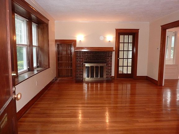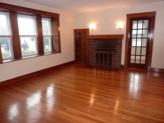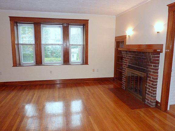 Terrific first floor unit on quiet side street right outside Cushing Square. Beautiful hardwood floors throughout the unit. Classic living room with brick fireplace and front facing seated window. Oversized dining room with built-in china cabinet. Massive eat-in kitchen with gas cooking and dishwasher. Full bath centered by equal sized bedrooms. Two enclosed and bright sunrooms perfect for work at home offices. 1 Car parking off street, gas heating and washer dryer provided. Plenty of basement storage available. First and Security for move-in. Currently occupied, and proper notice must be given. Sorry, no pets. Available 12/1 or later. 18 Month Lease First and Security required upon acceptance. Tenant pays for all utilities