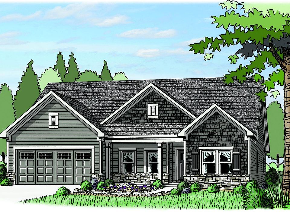 Lot 76 - The Everett - Exceptional ranch home with a 4-bedroom design that features a guest room with full bath plus 2 additional bedrooms and bath. The Owner's retreat is privately situated in the rear of the home with a double vanity, separate tub and shower and walk-in closet. The generous family room opens to the kitchen and dining room with lots of windows, open serving bar, and pantry. Discover the many amenities this beautiful community offers, including a clubhouse, swimming pool, playground and pickleball courts. Under Construction. Estimated completion December 2025. Up to $25,000 buyer incentive when using our preferred lender