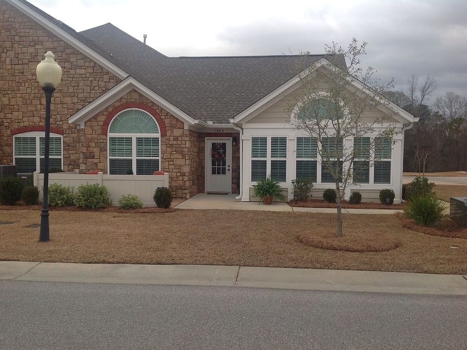 Beautiful home in Stone Creek Landing with 2 bedrooms downstairs, one bedroom/bonus room upstairs, 3 full baths, sunroom, separate dining room and large laundry room with space for a freezer and an extra storage room. Many upgrades including granite countertops, custom cabinets, cathedral ceilings downstairs, 3 1/2 inch plantation shudders, security system, gas fireplace, hardwood flooring in living area and kitchen, and stainless steel appliances. Wonderful maintenance free living community includes a luxurious clubhouse with fitness center, saltwater pool, walking trail and five stocked lakes.