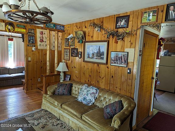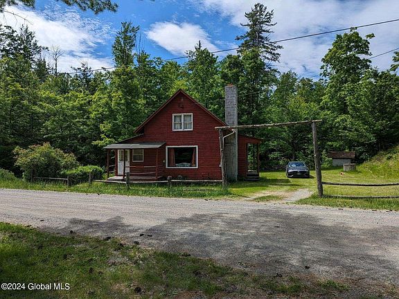 A gem in the Adirondacks. This retreat offers a large stone fireplace, knotty pine walls, hardwood floors, living room, built in bar overlooking the pond with a man-made waterfall and barn on 74.5 acres. 2 bedrooms and a bonus room for possible 3rd. Trails for hunting, snowmobiling and ATV's. Most barn beams have been updated and it has power. This unique property is located minutes from Lake George and Lake Champlain.