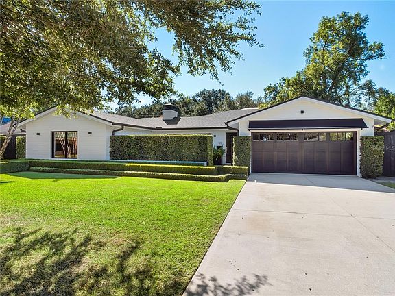 Sophisticated and timeless, this stunning one-story home was completely reimagined in 2019 by multi-award-winning builder and design through Z-Properties. Taken down to the studs and rebuilt with the finest materials, this split-plan three-bedroom, three-bath residence blends modern design with an inviting, incredible design feel. Gorgeous high grade wood flooring throughout along with expansive windows and walls of glass flood the interiors with natural light, taking advantage of picturesque views! The backyard is a sanctuary setting with Signature Landscape mature landscaping and sparkling pool and separate spa. The open concept design is ideal for daily living and entertaining, with a seamless flow extremely well thought-out living areas. A designer-inspired gas fireplace in the dining area creates a sophisticated and welcoming ambiance, while two sets of glass doors in the living room open to the inviting outdoor living spaces. The stately kitchen is a showpiece, featuring Thermador Pro Series appliances, a Sub-Zero wine tower, and elegant counters that elevate form and function. The primary suite offers a private retreat with a generous walk-in closet and a spa like well-appointed bath. Two additional bedroom suites are equally refined, each with custom closets for optimal storage and organization. Outside, every detail has been thoughtfully curated. The private front courtyard, centered around a tranquil Zen fountain private courtyard, sets the tone for the home's refined elegance. The rear outdoor living area features Brazilian IPE wood decking surrounding the heated saltwater pool, alongside lush landscaping, complete with sculpted hedges and tropical palms, creates a resort-like ambiance. A built-in summer kitchen includes a gas grill and green egg off the kitchen, and flex space is framed by a beautiful bougainvillea hedge for added serenity, ideal for effortless outdoor entertaining. Lastly there is a fully finished garage with indoor/outdoor carpeting and is temperature controlled with its mini-split AC unit. Residents of Hollieanna Shores enjoy deeded lake access to Lake Maitland, part of the prestigious Winter Park Chain-of-Lakes, via a private community boat ramp. Ideally with convenient access to major roadways, this exceptional home offers easy commutes to downtown Winter Park, Orlando and area airports, a sophisticated retreat in one of Central Florida's desirable Maitland/Winter Park hidden gem neighborhoods!