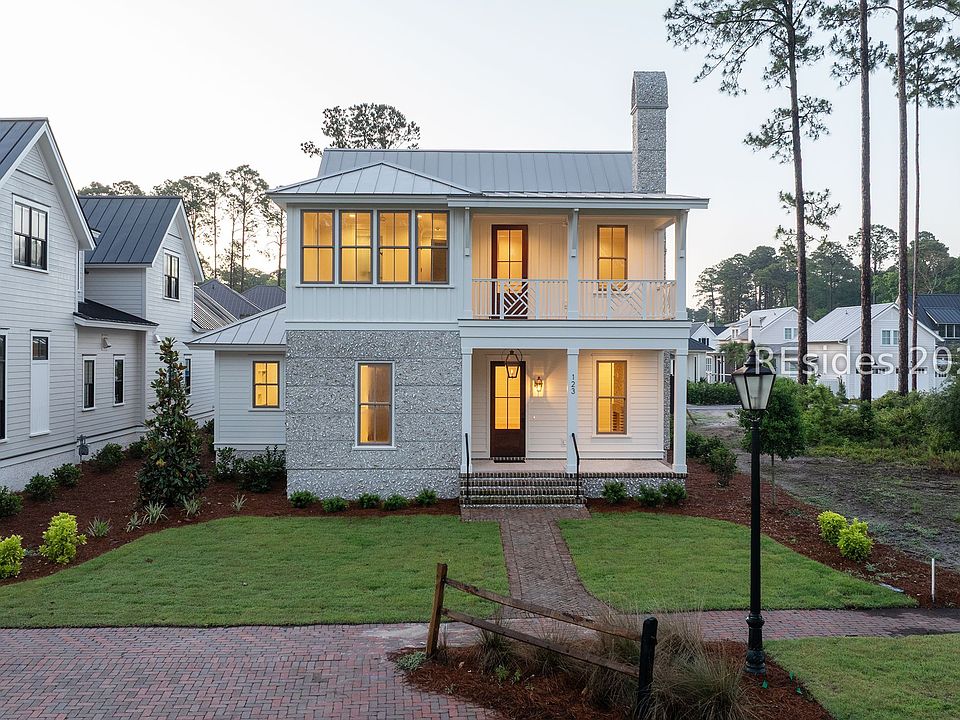 123 Hunting Lode Road is a 4-bed, 4-bath newly built home in Palmetto Bluff’s River Road neighborhood offering 3,164 sq ft of indoor-outdoor Lowcountry living. Local inspired finishes like tabby, knotty cypress & Savannah brick surround the great room’s fireplace, leading to a modern kitchen w/gas range & center island & into the screened porch w/a grilling patio while the 2 car garage, full laundry & pantry are just beyond. 2 upstairs suites flank a full office & sitting room w/covered balcony porch. The ground floor offers another suite & an expansive primary suite w/a walk-in closet & an ensuite bath w/a soaking tub & walk-in shower.
