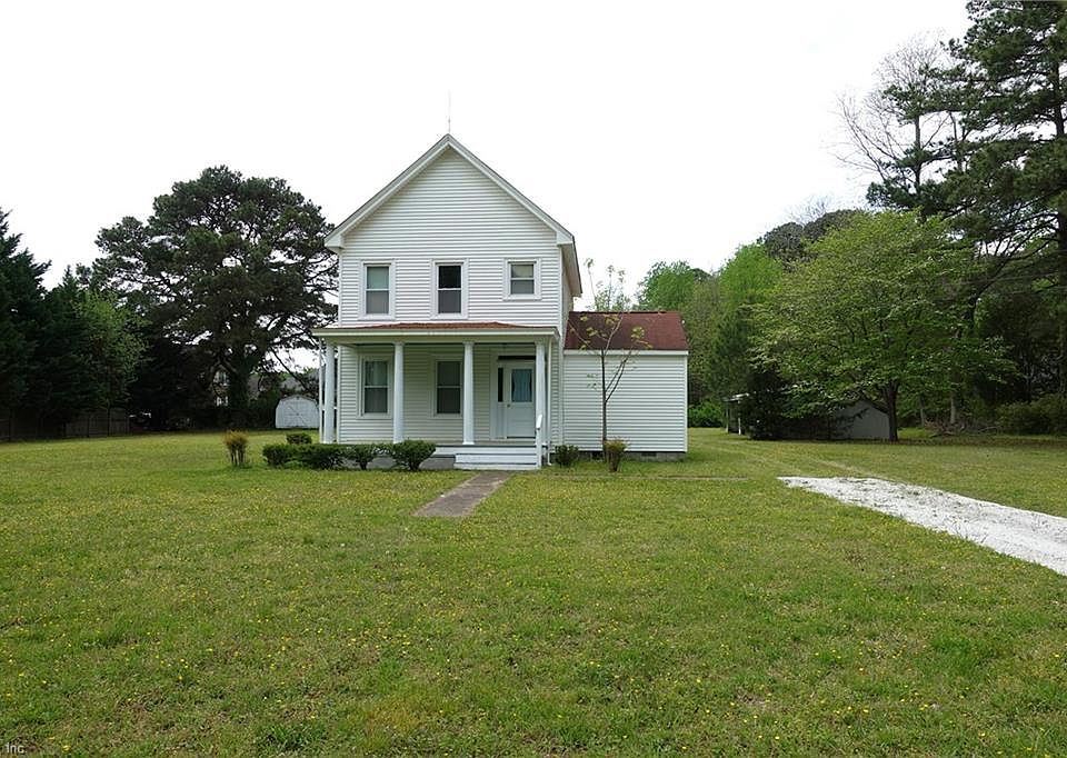 This 1921 farmhouse is situated on just over 1 acre and is located in the small town of Poquoson, known for its outstanding schools, low crime rate, sidewalks, ball fields, playgrounds, community pool, and its hometown feel. You’ll find in this solid construction home beautiful wood floors, updated kitchen & baths, solid 5-panel doors, glass & metal doorknobs, updated electrical, central heat & air, first floor primary suite with separate bath; plus two additional bedrooms & full bath on the second floor. There’s a half bath/laundry room combo off the great room. Property comes with a huge, detached garage and spacious workshop. No flood insurance and no HOA. They don’t build them like this anymore! ALL this and under $300k. A spectacular find. And what will you do with all this space? There’s certainly room for a circular drive or an inground pool perhaps. It’s your dream … dream big!