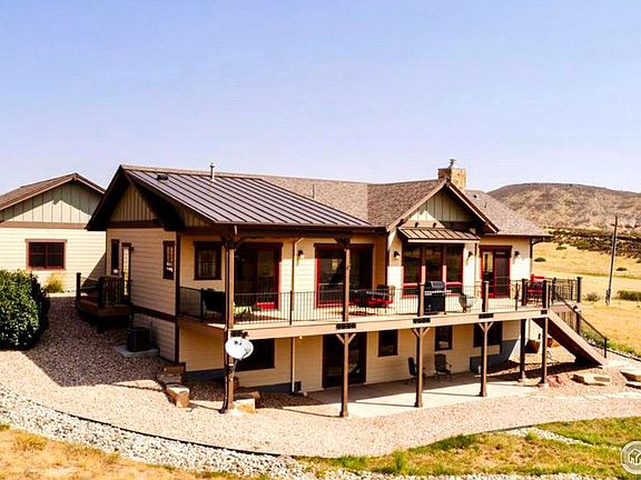 Rare opportunity to own 40 acres in Majestic Bonner Peak Ranch. This Custom built home has breathtaking mountain views, granite countertops, tile & wood floors, gourmet kitchen, high end custom cabinets w/ soft close. Open concept 3/Bed 3/Bath, office, 3 car garage, upper & lower deck w/ New 5700 sq ft Barn/Shop.Ranch/Upper has Master Bed & Bath, Kitchen, Dining, Family room, 2nd Bath & Laundry/Mud rm. The Walkout Basement has a 2nd Family rm, 2 Bedrooms, Office, 1 full Bath, Closets & extra Storage spaces. Large closet is Plumbed & ready for 4th bath. New Custom 5700 sq ft Monitor Barn/Shop w/ 900 sq ft second level, Interior & exterior Concrete. Endless uses; shop, breeding, RV storage or shelter animals, easily convert into Horse Barn, etc. This home offers the privacy of the mountains, yet 15 mins from town. Conveniently located at the end of the road w/ easy access to 287. Ample space for Animals, ATVs, RVs, Trailers, etc. Enjoy hiking through your very own canyon & up trails.Energy star rated 4.5, w/ Spray foam insulation. This Property not only has the beautiful mountain scenery, it will also back up to approximately 1-2 miles from the Glade Reservoir. HOA covers all road maintenance. Priced to sell Fast!