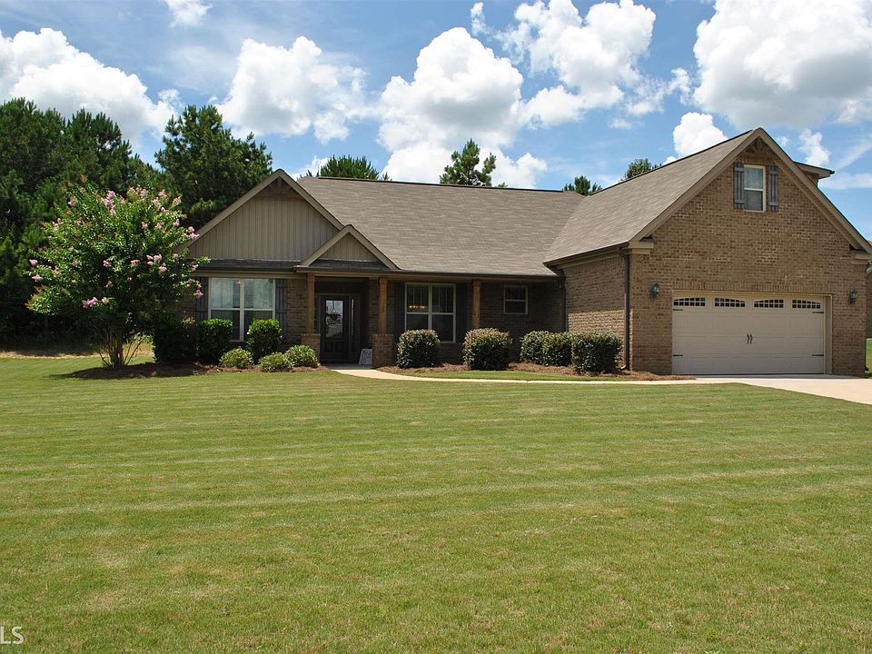 Buyers home didn't close and this beauty is back on the market! This MOVE IN READY gorgeous ranch style home features an open concept with oversize family room overlooking gourmet kitchen with upgraded cabinets, island, wood floors, granite counter tops, built in desk, and stainless appliances. Formal dining room with hardwood floors and custom trim package. Split bedroom plan design. Master suite with walk-in closet, sitting area, his and her sinks, garden tub & tiled shower. Secondary bedrooms are spacious. Upstairs you will find large bonus room which could be 4th bedroom and full bath perfect for office, teen suite or MIL suite. Large level home site in cul de sac. This home sits in a sought after subdivision and located in Locust Grove Schools