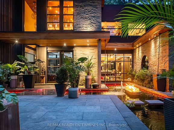 An Unparalleled Masterpiece Of Design & Luxury Located In Highly Coveted Mineola West. This Extraordinary, Detached Home Offers Approx 10,000 Sqft. Blending Architectural Innovation By Dochia Design W/ The Refined Interiors Of Fleur De Lis. Built by Easton Homes W/ Construction Cost Of $6.5M (not including land cost) Plus Over $2M In Owner Upgrades, The Home Exudes Sophistication, From Soaring 9 -14 Ft Ceilngs & Flr-To-Ceil Windows To Multiple W/Os That Connect The Interior W/ Its Serene Surroundings. The Main Level Welcomes You W/ A Grand Foyer Featuring A Free-Floating Staircase W/ Shattered Glass Panels, Porcelain Flrs & Massive Sliding Doors Leading To The Bkyd Oasis. Sunken Living & Dining Rooms Showcase Coffered Ceils, Gas F/P, Backlit Onyx Walls, Exposed Brick Accents & Custom B/I Cabinetry, While The Chefs Scavolini Kitchen Impresses W/ Red Iron Marble Countertops, Top Miele Appls, A Lrg Centre Island & Abundant Cabinetry. The Family Room Offers An Indoor-Outdoor Transition W/ Flr-To-Ceil Windows Overlooking The Terrace & Pool, A Linear Gas F/P & Advanced Sound System. 5 Luxurious Bdrms Plus A Nanny/In-Law Suite Ensure Comfort For The Entire Family. The Primary Suite Is A Private Retreat W/ A Corner F/P, Expansive Windows, A Custom W/I Closet & A Spa-Inspired 5-Pc Ensuite Featuring A Deep Soaker Tub, Curbless Walk-In Shower & Dornbracht Fixtures. Addnl Bdrms Each Feature Ensuite Baths & Bespoke Storage. The Lower Lvl Is A Resort-Style Haven, Incl A Home Theatre W/ Atmos Surround Sound, Rec Room W/ Onyx Wet Bar, Gym, Massage & Spa Area & Hidden Panic Room. Every Detail, From Radiant Heated Flrs & Motion-Activated Staircase Lighting To Integrated Leutron & Control 4 Automation, Ensures Comfort & Convenience. Outdoors, The Property Is A Private Sanctuary. A Gunite Saltwater Pool, HotTub W/ Fire Table, Waterfalls, 4 Heated Ponds W/ Koi, Custom Play Area, Outdoor Kitchen, Zen Garden & Multiple Terraces Create A Resort-Style Environment & Offer Exceptional Privacy