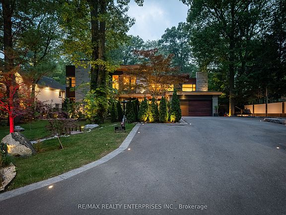 An Unparalleled Masterpiece Of Design & Luxury Located In Highly Coveted Mineola West. This Extraordinary, Detached Home Offers Approx 10,000 Sqft. Blending Architectural Innovation By Dochia Design W/ The Refined Interiors Of Fleur De Lis. Built by Easton Homes W/ A Construction Cost Of $6.5M Plus Over $2M In Owner Upgrades, The Home Exudes Sophistication, From Soaring 9 to 14 Ft Ceilngs & Flr-To-Ceil Windows To Multiple W/Os That Connect The Interior W/ Its Serene Surroundings. The Main Level Welcomes You W/ A Grand Foyer Featuring A Free-Floating Staircase W/ Shattered Glass Panels, Porcelain Flrs & Massive Sliding Doors Leading To The Bkyd Oasis. Sunken Living & Dining Rooms Showcase Coffered Ceils, Gas F/P, Backlit Onyx Walls, Exposed Brick Accents & Custom B/I Cabinetry, While The Chefs Scavolini Kitchen Impresses W/ Red Iron Marble Countertops, Top Miele Appls, A Lrg Centre Island & Abundant Cabinetry. The Family Room Offers An Indoor-Outdoor Transition W/ Flr-To-Ceil Windows Overlooking The Terrace & Pool, A Linear Gas F/P & Advanced Sound System. 5 Luxurious Bdrms Plus A Nanny/In-Law Suite Ensure Comfort For The Entire Family. The Primary Suite Is A Private Retreat W/ A Corner F/P, Expansive Windows, A Custom W/I Closet & A Spa-Inspired 5-Pc Ensuite Featuring A Deep Soaker Tub, Curbless Walk-In Shower & Dornbracht Fixtures. Addnl Bdrms Each Feature Ensuite Baths & Bespoke Storage. The Lower Lvl Is A Resort-Style Haven, Incl A Home Theatre W/ Atmos Surround Sound, Rec Room W/ Onyx Wet Bar, Gym, Massage & Spa Area & Hidden Panic Room. Every Detail, From Radiant Heated Flrs & Motion-Activated Staircase Lighting To Integrated Leutron & Control 4 Automation, Ensures Comfort & Convenience. Outdoors, The Property Is A Private Sanctuary. A Gunite Saltwater Pool, Hot Tub W/ Fire Table, Waterfalls, 4 Heated Ponds W/ Koi, Custom Play Area, Outdoor Kitchen, Zen Garden & Multiple Terraces Create A Resort-Style Environment & Offer Exceptional Privacy