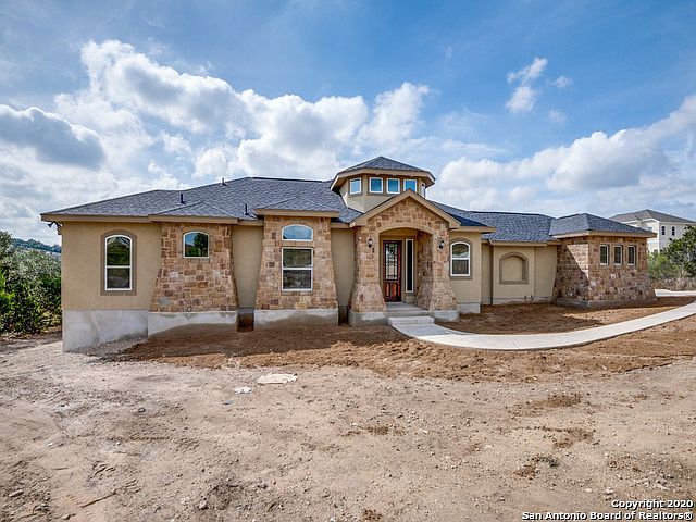 HOME IS TO BE BUILT- EARLY 2021 COMPLETION - LUXURY LAKE LIVING AT ITS BEST. HOME IS ON 1.3 ACRE LOT WITH GORGEOUS HILL COUNTRY VIEWS - GOURMET KITCHEN, STAINLESS STEEL APPL'S, SOLID WOOD CAB'S W/SOFTCLOSE HDWRE AND DRAWERS. NICE WALK IN PANTRY, GRANITE THROUGHOUT. OPEN FLOOR PLAN, OVERSIZED BACK PATIO WITH FIREPLACE, T&G CEILINGS, ARCHES, BUTT GLASS WINDOWS, HUGE 18 X 22 LIV ROOM, RECESSED LIGHTS. HIGH COFFURED CEILINGS WITH CROWN MOLDING DETAILS IN MASTER AND FAMILY ROOM. LUXURY MASTER SUITE WITH HUGE WALK IN CLOSET. MASTER BATH HAS HIS/HER VANITIES, SOAKER TUB AND AN OVERSIZED WALK IN CORNER SHOWER. ENERGY EFFICIENT - 100% MASONRY (STONE AND STUCCO), RADIANT BARRIER DECKING IN ATTIC, DOUBLE PANE LOW E WINDOWS, 30 YEAR DIMENSIONAL SHINGLES, PRE WIRED FOR ALARM, PRE-PLUMBED FOR WATER SOFTNER, DEDICATED PLUG IN GARAGE FOR FREEZER, GARAGE IS OVERSIZED WITH EXTRA SPACE FOR A WORK BENNCH. NICE FRONT PORCH. SECONDARY BEDROOMS ARE NICE SIZED AND BOTH HAVE WINDOW SEATS AND A JACK AND JILL BATH. SPACIOUS LAUNDRY ROOM, MUD ROOM WITH BENCH AND A HALF BATH FOR GUESTS. IF YOU ARE LOOKING FOR A MODERN UPSCALE HILL COUNTRY HOME, THEN COME SEE US, YOU WON'T BE DISAPPOINTED. BUILDER HAS A MODEL HOME IN THE AREA. PICTURES ARE OF THE SAME PLAN. MYSTIC SHORES IS A BEAUTIFUL HILL COUNTRY COMMUNITY WITH A WATERFRONT OWNERS PARK, TWO POOLS, BOAT RAMP, SPORTS COURT, EXERCISE ROOM, 100 ACRE NATURE PARK ON THE GUADALUPE RIVER AND MORE.
