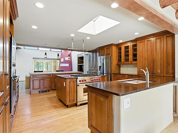 Inside, over 3,200 square feet of thoughtfully designed space showcases vaulted rough-hewn viga ceilings , 12 skylights, a classic kiva fireplace, and handcrafted bancos and nichos. Fresh paint in the common areas, new carpet, tile floors, and wood-framed windows enhance the sense of comfort and quality throughout.