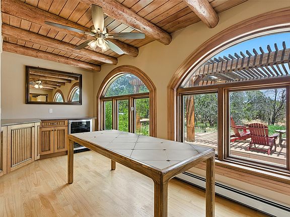 Tucked away on 2.18 peaceful, horse-zoned acres in the heart of White Rock, 123 La Senda is more than a home—it’s a private retreat designed for those who value beauty, space, and connection to the land. With graceful portals wrapping three sides, lush gardens, and a tranquil backyard pond, this residence invites you to slow down and savor every season. Beyond the adobe-walled yard, native piñon and juniper trees stretch across the landscape, and equine trails wind through the neighborhood—perfect for morning rides, afternoon hikes, or sunset strolls under open skies.