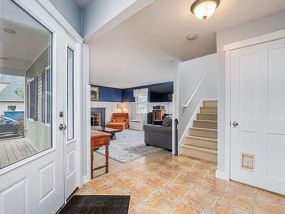Nestled at the end of a dead end street is this lovely updated Colonial farmhouse with a great, level yard and plenty of off street parking. The inviting farmer's porch welcomes you to this open concept home. Upon entering the tiled foyer, the expansive living room is to your left and offers lots of room for all of your furnishings. A wood burning fireplace is the focal point. To the right is the huge country kitchen and dining area. The kitchen offers dble wall ovens, a farmer's sink, pantry and lots of counter space and is open to dining room. Great for entertaining! Off the kitchen is a bath as well as a fabulous cathedral ceiling's sun room overlooking the back yard. The 2nd floor has three nice sized bedrooms, an office and a laundry room/area.. The 4th bedroom takes up the entire 3rd floor w/cath. ceilings; could be a fabulous family room, play room or Master Suite. Painted wide pine floors through out the house. Walking distance to UML is a bonus!