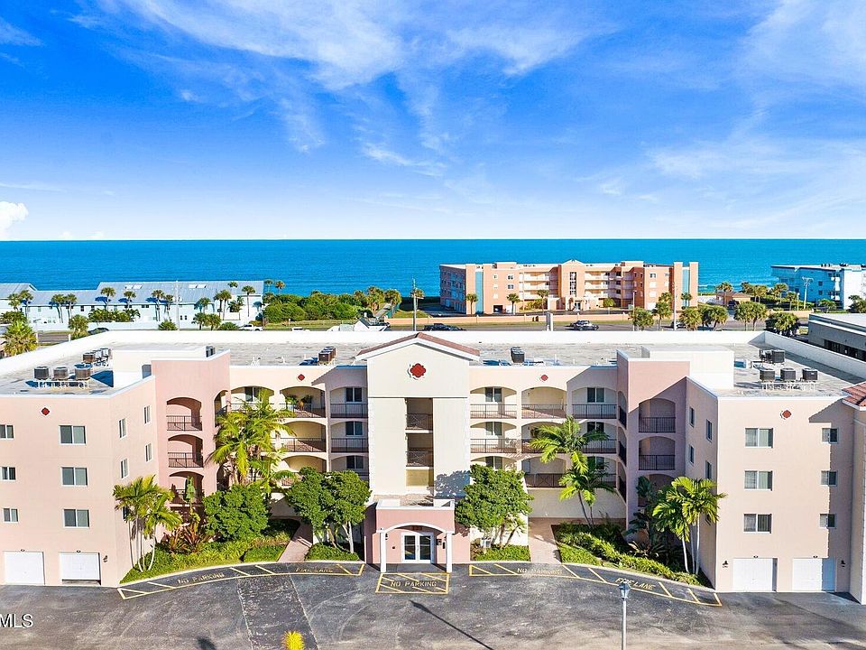 You have just found your new Barrier Island Penthouse Home with wonderful Atlantic Ocean Views. This Stunning 3 bedroom, 2 bath, end unit Penthouse offers; Fantastic Ocean views, Hurricane Impact windows and Doors, Open Floorplan, light and bright, Chefs Kitchen, Quartz countertops, huge kitchen island, breakfast bar, Stainless Steel appliances encompassing dining room and open to large living room, Travertine flooring in main living areas, Carpeted Bedrooms, large in-unit laundry, en-suite primary bedroom with huge shower and double bowl sinks, 2 generously sized guest bedrooms, a huge 33' screened covered patio, and 2 private under building garage parking spots #2 and #4. This wonderful Beachside community offers; Community Pool, BBQ, Clubhouse, Fitness center, pickleball and tennis court. Enjoy being across Jimmy Buffett Memorial Highway (A1A) from the Atlantic Ocean and Beaches. Close to A rated Schools, Shopping, Dining, and Entertainment. Enjoy Florida Beachside Living!!