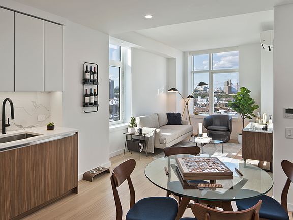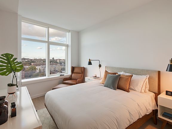 PLG stands as a striking 26-story luxury rental building, offering a range of studio to three-bedroom residences in the heart of Prospect Lefferts Gardens. As the tallest building in the neighborhood, it boasts expansive, oversized windows in every home, flooding interiors with natural light and offering breathtaking views of Prospect Park, the New York City skyline, and beyond. Each residence is designed with modern elegance, featuring Caesarstone quartz countertops, stainless steel appliances, in-home washers and dryers, spacious bathrooms, generous closets, and smart home technology, including keyless entry. With over 50,000 square feet of premier amenities, PLG provides an unmatched lifestyle experience. Residents enjoy both indoor and outdoor facilities, including a rooftop swimming pool, outdoor BBQ grills, resident lounge, media room, fitness center, event space, TULU service, outdoor half-basketball court, dog run, sauna, and an indoor swimming pool. Whether for relaxation or recreation, PLG offers a comprehensive array of amenities designed to cater to all tastes and lifestyles. *Apartment images shown may not represent the actual unit and or view of the apartment listed. Please inquire for more information. 4,154 , 1 on 13 , 4,500